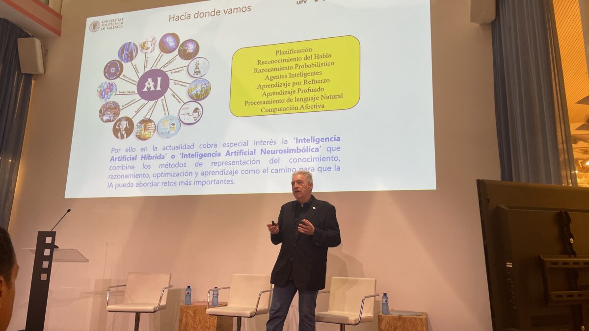 València, 25 de septiembre de 2025. El director del Instituto Universitario Valenciano de Investigación en Inteligencia Artificial (VRAIN) de la Universitat Politècnica de València (UPV), Vicent Botti, ha destacado que el futuro más inmediato de la inteligencia artificial (IA) pasa por una IA híbrida o una IA neurosimbólica en la jornada del medio de comunicación `Economía Digital´, bajo el título, “Innovación con acento valenciano: IA al servicio de la empresa” celebrada en Las Naves.